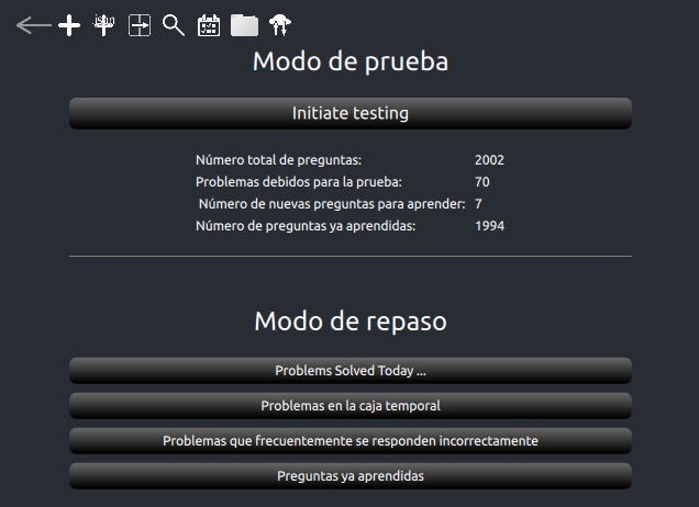 Modo de prueba: Modo para problemas que se deben hoy. Si resuelves más de 20 conjuntos, tu puntuación se mostrará al final.